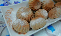 يوضع السميد في عاء عميق مناسب يضاف إليه الزبدة, السكر, الماء, ماء الزهر و تخلط جيداً و تترك مغطاة جانباً لنصف ساعة ثم تقسم العجينة الناتجة إلى كرات بحسب حجم القالب المستخدم لعمل المعمول.