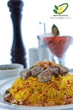اسم الطبق: كبسة اللحم بأرز بسمتي حدائق بنجاب.