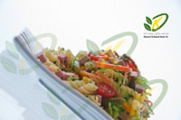 تخلط جميع المواد السابقة في وعاء عميق مع رشة ملح وفلفل أبيض بحسب الرغبة, تسكب السلطة في وعاء التقديم و تزين بالأنشوا.
