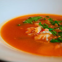 في ذات وعاء الطهي يوضع القليل من الزيت و الزبدة يضاف الجزر, البصل, و تقلب جميع المواد جيداً إلى أن تذبل ثم تضاف البندورة مع التحريك الجيد و تترك إلى أن تبدأ بالغليان, يضاف مرق السمك, الأرز, عصير الليمون مع القليل من الملح و الفلفل, في هذه الأثناء يقشر القديدس و يضاف القشر إلى والوعاء السابق ويترك ليغلي ل 20 دقيقة مع مراعاة التحريك من قت لآخر ثم يسكب الشوربة في الخلاط و يخلط جيداً, يسكب الخليط الناتج في مصفاة و يصفى جيداً يعاد مرة آخرى إلى النار على أن تكون النار خفيفة جداً, يوضع القريدس المقشر في الخلاط و يترك القليل منه للزينة مع كمية كافية من الشوربة و يخلط جيداً ثم يعاد إلى النار يحرك جيداً إلى أن يبدأ بالغليان تضاف الكمية المتبقية من الزبدة, القيمر مع التحريك الجيد ثم ترفع الشوربة عن النار و تسكب في طبق التقديم مزينةبالبقدونس و القريدس.